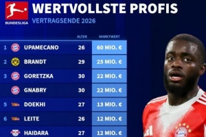 合同将到期的德甲球员身价榜:欧元