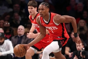 第三节:申京反击三分、反击造罚球、贾巴里抢断后杜兰特反击上篮加罚、杜兰特后场篮板推反击、伊森后场篮板推反击,一口气拉开25分。