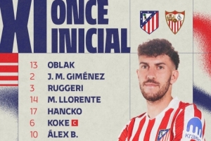 马竞vs塞维首发:小蜘蛛、巴埃纳先发 瑟尔洛特、朱利亚诺出战