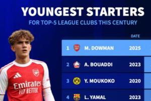 15岁天才载入史册!道曼成五大联赛本世纪最年轻首发,亚马尔第4