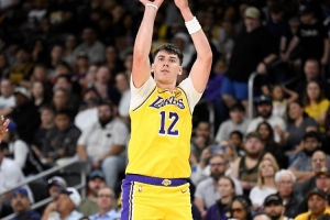 东契奇和海斯击掌庆祝!湖人晒赢球海报:今晚洛杉矶很吵