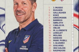 前锋:9-索尔洛特、12-卡洛斯-马丁、19-阿尔瓦雷斯、20-朱利亚诺-西蒙尼、22-拉斯帕多里
