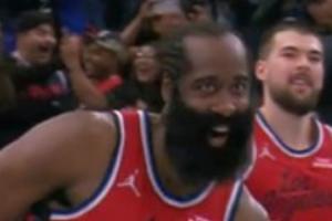 难绷!小卡绝杀后单手指天冷酷庆祝哈登销魂表情凑了过来
