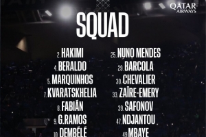 巴黎对阵拜仁大名单:登贝莱、阿什拉夫领衔,扎巴尔尼、杜埃缺席