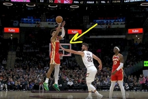 就差一点点!杰伦-约翰逊三节结束加长压哨三分命中 但先超时!